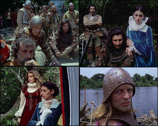 Whatever chaos was going on behind the scenes, Herzog coaxed a great performance out of Klaus Kinski. His Aguirre is an understated madman, at first quite rational but clearly plotting his own agenda. He does have explosive outbursts but is calm for the most part, even when he’s the last survivor and left with his madness. The thick, jagged face of Kinski is unforgettable, especially under that iconic helmet. Aguirre walks with a marked limp, and often stands at a odd angle to everyone else. He is at odds with his world, spurning gold and seeking power and fame for their own ends. The rest of the cast are fine, particularly Edward Roland as Okello, the black slave who wants to claim his own freedom and wealth. Helena Rujo as Inés also excels as a woman who senses the imminent death for them all, her impassive face belying her grief at losing her lover, and any hope of survival.