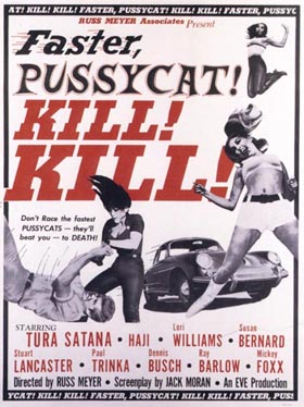 Having said all that, "Faster Pussycat, kill, kill!" is somewhat of a departure or more a precursor in a way, to this description of the Meyer style. It's in black-and-white, and there's no nudity or explicit sexuality in the film. The breast-factor is certainly in evidence, especially with exploitation icon Tura Satana. Lack of nudity, however, is not to say it's not worth watching, there's an abundance of visceral energy and performances throughout. Tura plays Varla, the hot-rod driving go-go dancer with a mean streak, a mile wide. She's adept at karate, more than a match for any man. Once you see Varla in action, you'll know you've seen a worthwhile film in the pantheon of cult cinema, or however you like to describe this stuff.