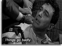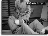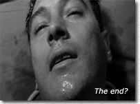That night, Tony wakes up to find the old man - the boss of the company - at his bedside. He says how sorry he is that Tony couldn't make his dream come true. Tony says that maybe he never had a dream, and the old man concurs - that maybe that was the problem all along. The man says that they have a spot for him in the operating area, that they're ready for him now. Tony protests that he's not ready, that he hasn't planned his new life yet. The old man is comforting, yet suddenly a priest comes along to read his last rights as he's strapped to a stretcher and wheeled away. Screaming and struggling, gagged with a rubber hose, Tony knows just what's about to happen, remembering that the company always needs a supply of corpses ... What follows is probably one of the most harrowing endings of any film. Yet it's also one which, even for just a couple of seconds, allows us to see the dream that perhaps Arthur Hamilton should have had all along, but realised far too late.